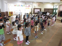 7月6日(水)、七夕会がありました。紙芝居「あまのがわにかかるはし」が終わると七夕クイズ!!正解すると「ヤッター!!」と大喜びの子ども達!!