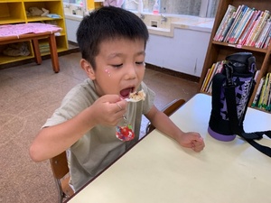 非常食の試食体験も行い、お湯を入れる前と入れた後を比べながら、親子で非常食を試食してもらいました。「ご飯ができてるー!」と驚きの声が聞かれたり、「味は美味しい!」とパクパク食べる姿がみられました。お忙しい中、親子わくわく展に参加してくださりありがとうございました!子ども達の笑顔がたくさんみられて嬉しかったです!