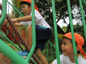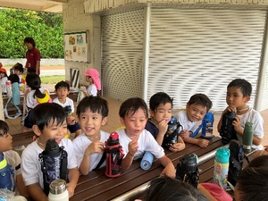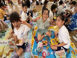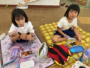 天気の心配もあり、お弁当は園に戻ってお友達と仲良く食べたり、お菓子交換をしたり楽しんでいる姿が見られました。朝早くから、美味しいお弁当の準備をして下さった保護者の皆様、ありがとうございました☻